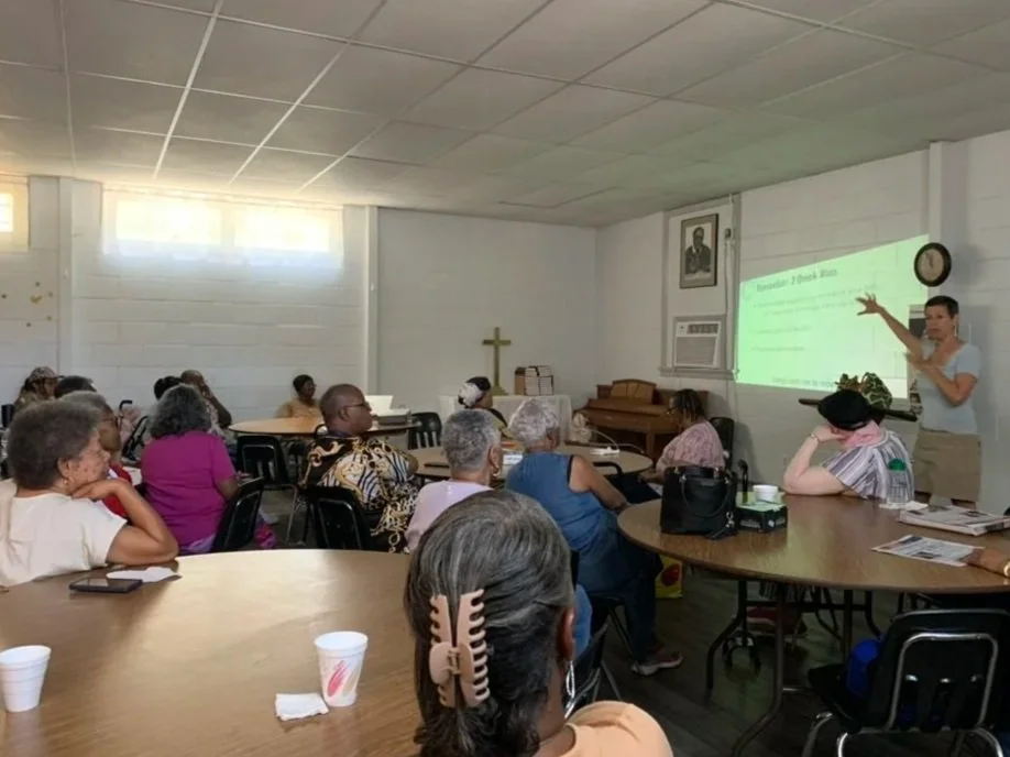 C3 Climate Services Manager, Jacqui Bauer, presenting to seniors at St. Peter’s Episcopal Church about energy efficiency.
