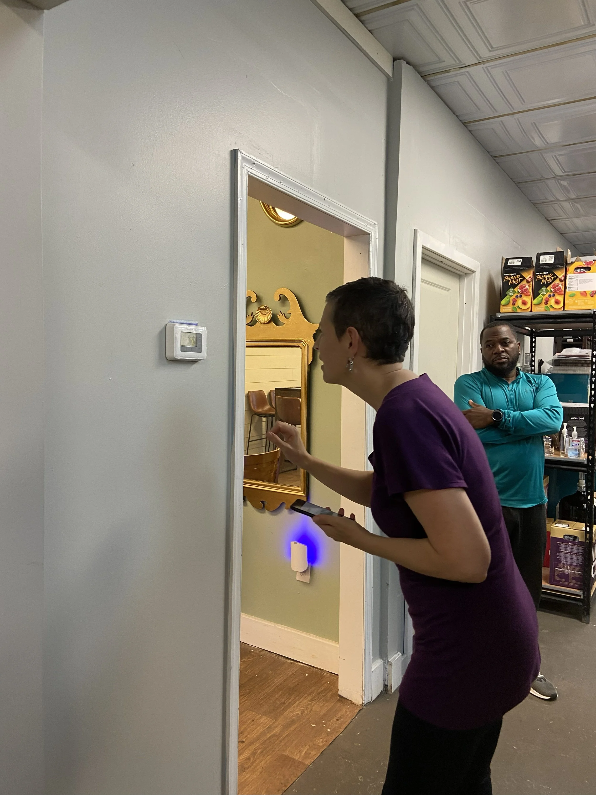 C3 team members Jacqui Bauer and Coles Jennings performing energy audits to locate building inefficiencies.